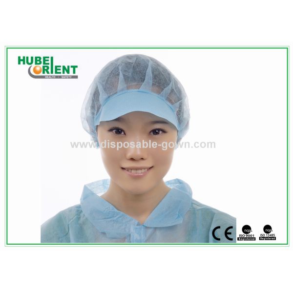ISO9001/ISO13485 Non Woven PP Round Disposable Bouffant Cap With Peak